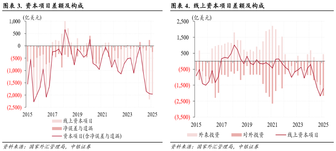 线上资本项目逆差为历史次高,内资外流规模创阶段新高,外资流入规模同比收窄